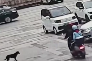 流浪狗在路上无差别攻击人,多次咬骑车路过的人!!