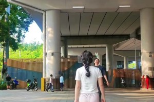 两人配合默契踢毽子有来有回,男子怀里还抱着一只狗!