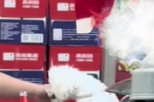 男子持叉带刀闯入烧烤店内刺狗,疑似向狗“寻仇”。